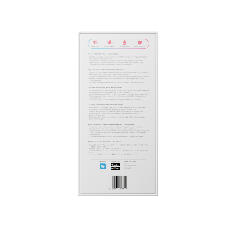 Not like other anal beadsUnlike other beads, Ridge isn’t static. It delivers strong vibrations, and rotational movement, which can be separately controlled, to add more than just a filling sensation. up to 116 rotations /min. |